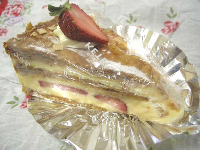 ミルフィーユっぽい、あまーいクリームとパイ生地のケーキです。