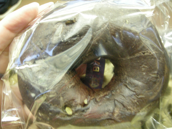 ココア生地に、マシュマロとナッツが練り込まれたくちあたりふんわりしたベーグルです。