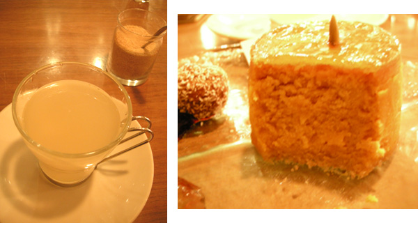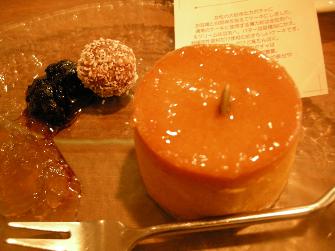 かぼちゃの豆腐ケーキ(600円)、ゆずしょうが茶(600円)を注文。