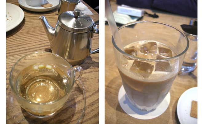 アイスカフェオレ(630円)、ゆず香ばし茶(682円)