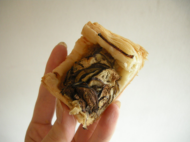 パリパリのパイ生地(?)が口当たり軽くて、しつこすぎないけどすーっごく美味しい茄子の旨味が効いてます。