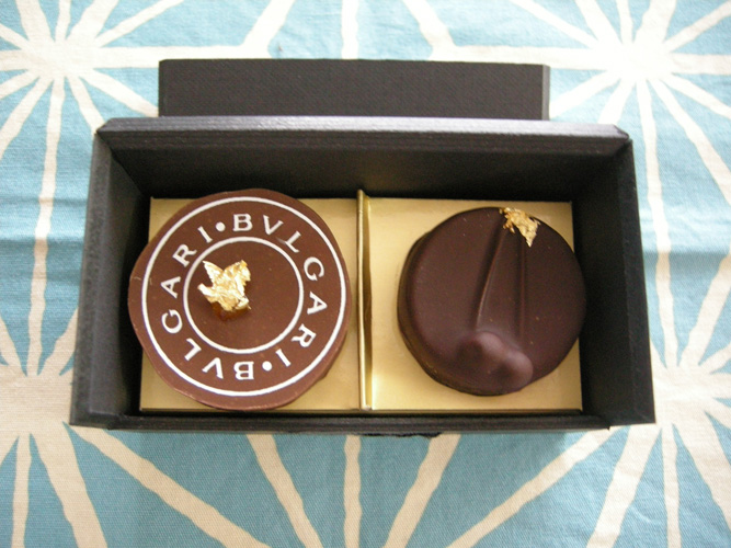 いただきものなので名前とかはよく分からないのですが、ブルガリのロゴのはいったものは中に酸味のあるソース(とろっとはしていません)が入っていて、チョコレートだけどさっぱりした後味。