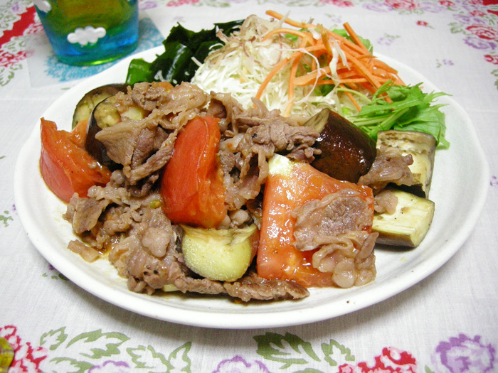 牛肉のトマトとナスのコンソメ炒め