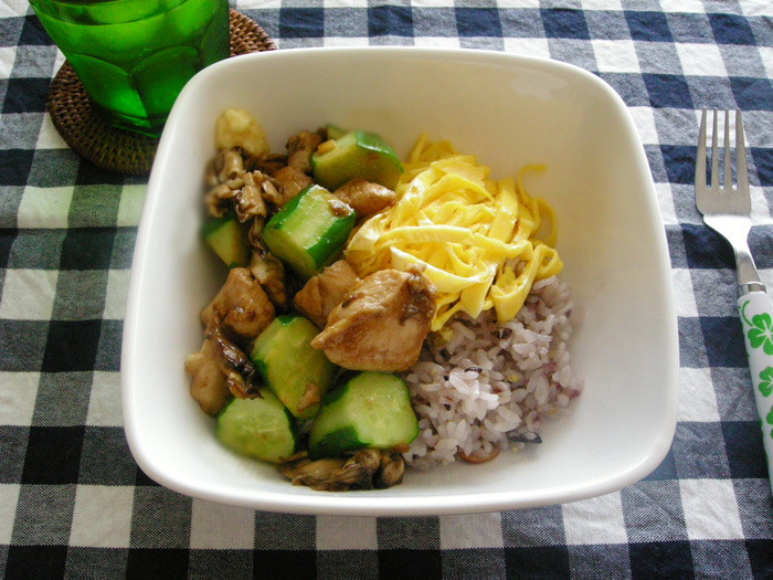 私は鶏肉とキュウリ以外にえのき茸も入れました。タレがよく絡まって美味しかったです。