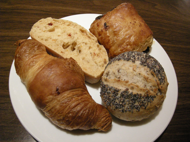常時6種類の小さなパンが食べ放題です。