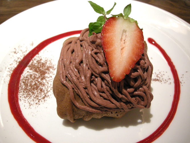 フロマージュとイチゴのモンブラン仕立てのクレープバニラアイス包み
